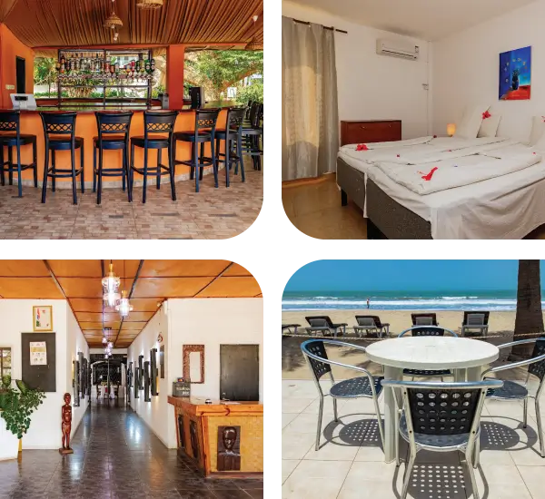 The Bungalow Beach Hotel is the right choice for visitors who are searching for a combination of charm, peace and quiet, and a convenient position from which to explore The Gambia. It is a lovely, comfortable hotel, situated by the beach of Kotu. It is our aim to provide you with the highest standard of personal service, comfort and cuisine to help make your stay a pleasant and memorable one. With our setting and easy access; you will find that you are well placed to explore one of the best parts of the country. Whether you plan to visit us on pleasure or business we are here to help you relax and get the most from your stay.